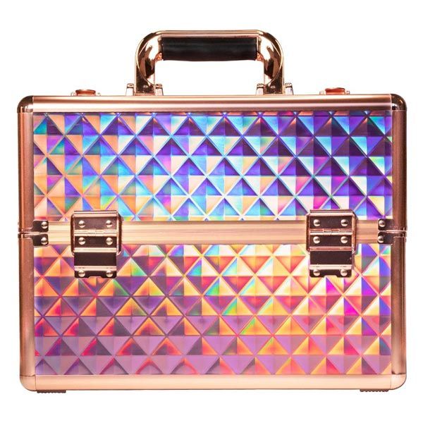 КОЗМЕТИЧЕН КУФАР XL - 3D РОМБ РОЗОВО ЗЛАТО - 33x25x25см