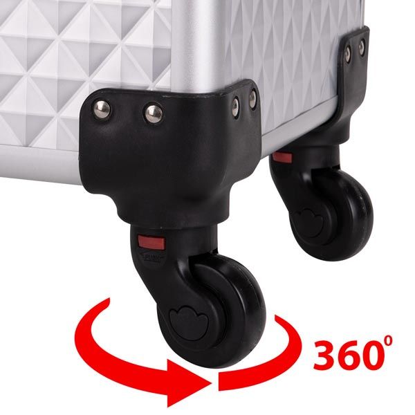 КОЗМЕТИЧЕН КУФАР XXXL 4в1 С КОЛЕЛЦА 3D РОМБ СРЕБРИСТ 95x25x35см