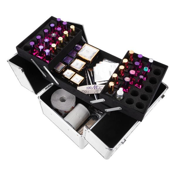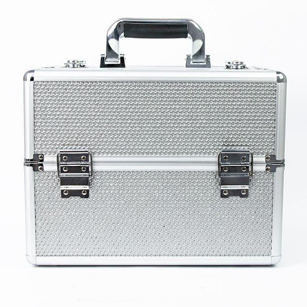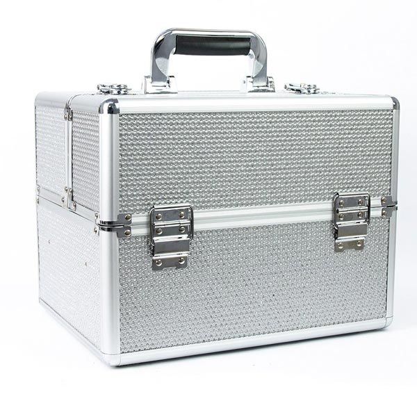 КОЗМЕТИЧЕН КУФАР XL - СРЕБРИСТ С БРОКАТ - 32x25x25 см