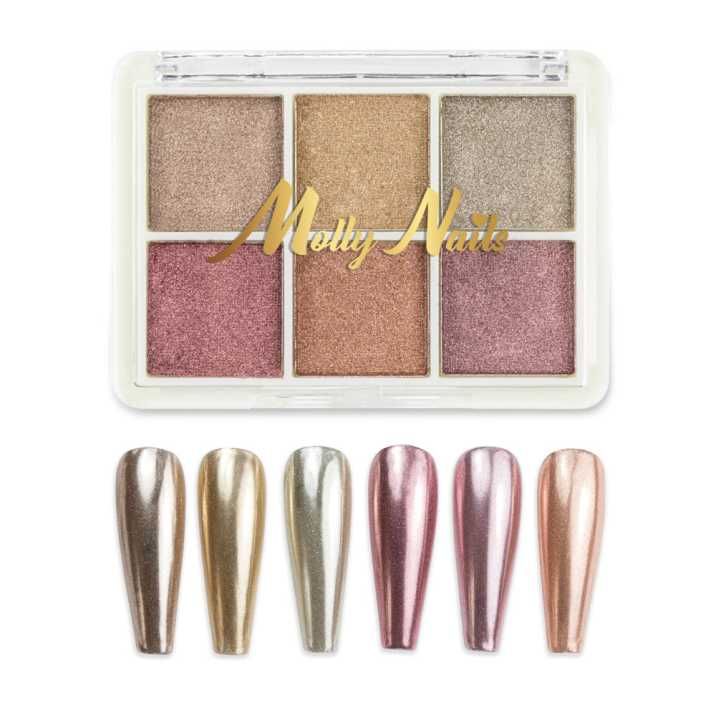 ДЕКОРАТИВНА ПУДРА ЗА НОКТИ С ОГЛЕДАЛЕН ЕФЕКТ №3 - 6 ЦВЯТА - 3г