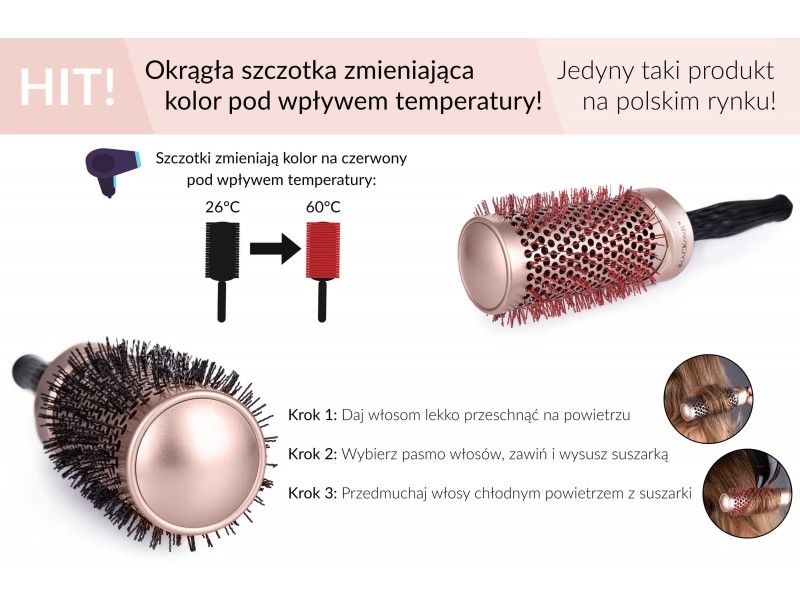 - Единствената четка на пазара, която променя цвета си при нагряване от 60'C